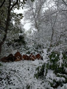 The snow changes the landscape and morphs it into the sort of place where one might see a fairy hiding away from the cold.