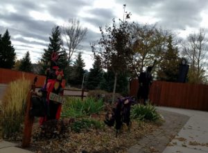 Halloween was once my favorite holiday. Before it became the adult party extravaganza that it is today, it was just a holiday for children to go out and beg for candy. One could buy sacks of candy and perhaps the odd spider or two. But now there are lots of things sold for those who like to go mad with decorating. And I appreciate their spirit, because someone has to do it. The people who once went all out with wires and flying figures have moved on, but others have accepted the challenge of totally covering their yards with scary stuff.