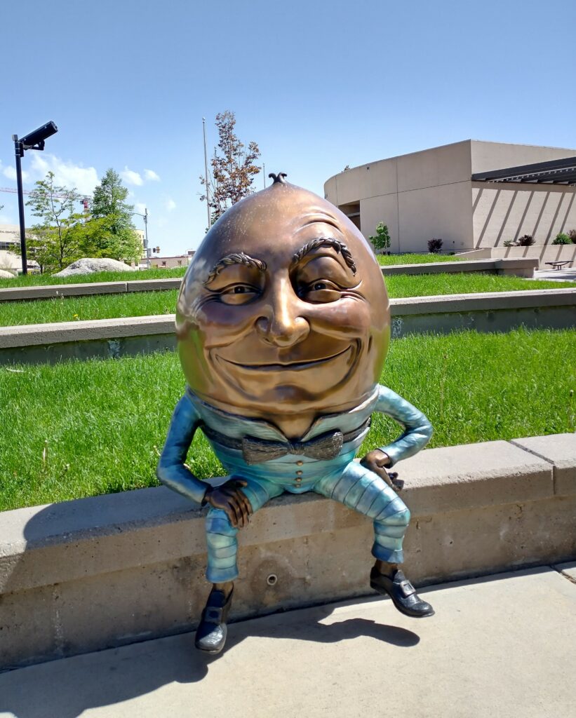 There is some mad artist in town who is enamored of these anthropomorphic eggs, and I assume that Mr. Humpty Dumpty was his inspiration.