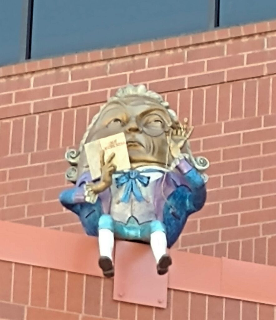 Located nearby, again sitting on the walls are the newest of his fellow Dumpties. Careful Pizza Man, you might drop that pie on some unsuspecting tourist.