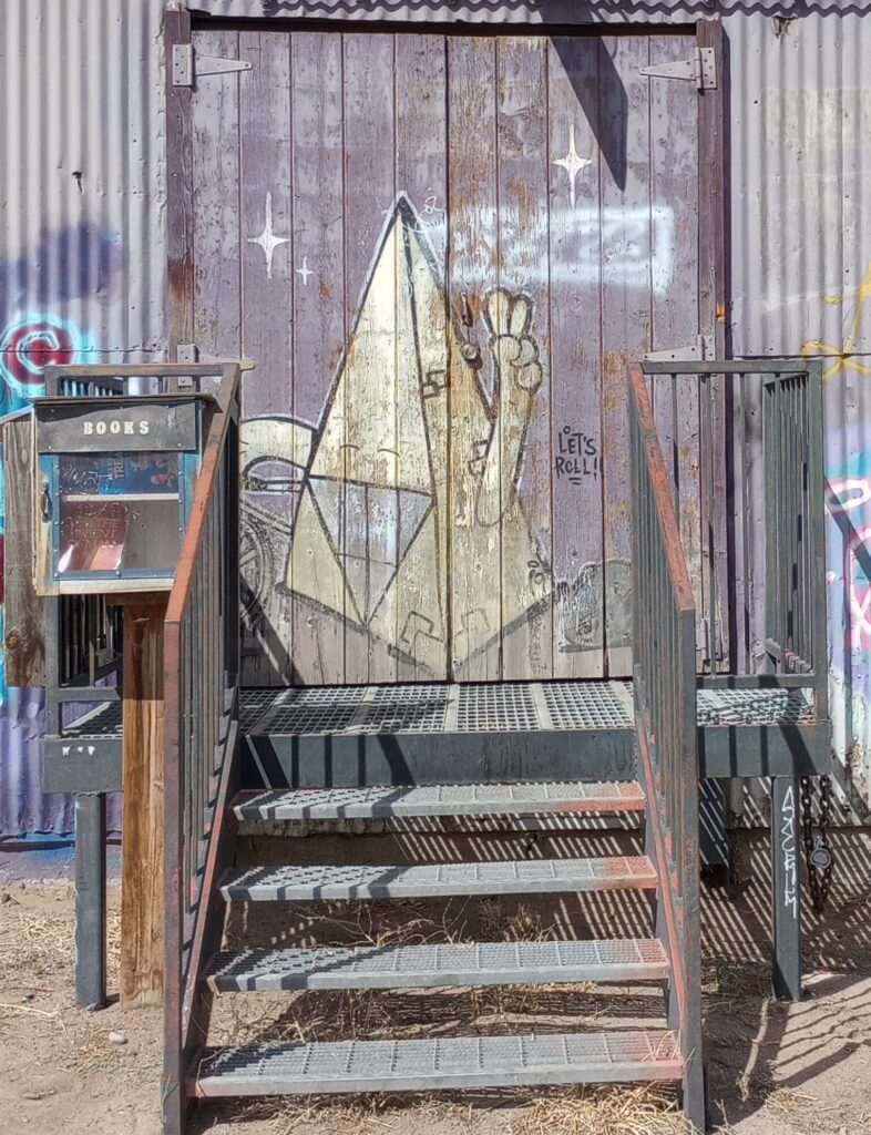 Yes, even our friendly police station has embraced the trend. This giant building is full of just offices, if you need to be arrested, you have to go to the county jail (which has no graffiti). This sign seems to be melting, perhaps because it is south facing. And again, we taxpayers funded this. Oh well, I guess that makes all of us locals patrons of the arts (and a magnet for tourists).