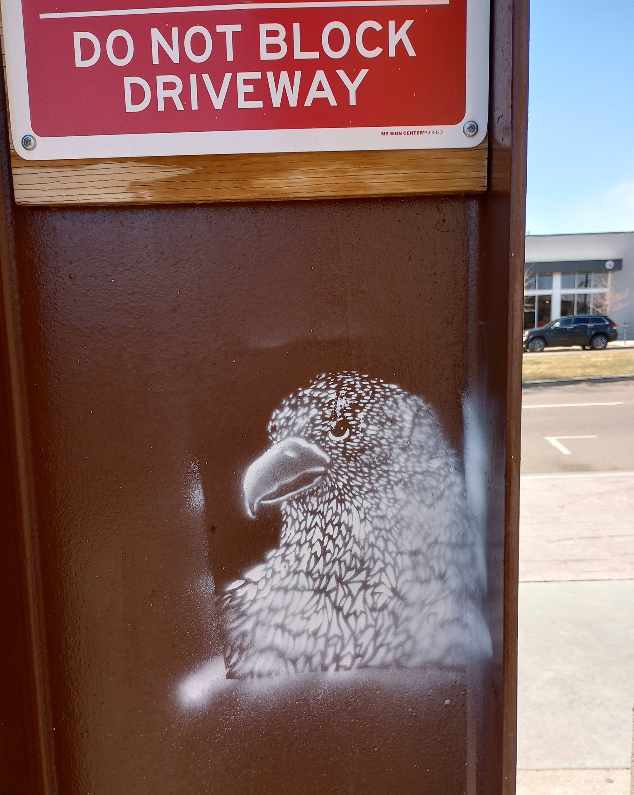 In a nod to the style of Banksy, this bird graces an I-beam. (Also it takes much less time to execute before anyone notices what one is up to).
