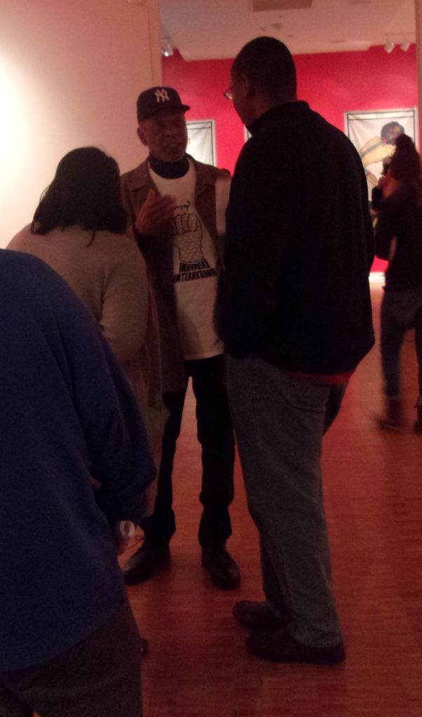 There was an experimental (plot-less) film showing on one wall and I heard the term “white privilege” bandied about. I could tell who the filmmaker was, he was the man wearing a scarf casually wound around his neck (not pictured unfortunately).