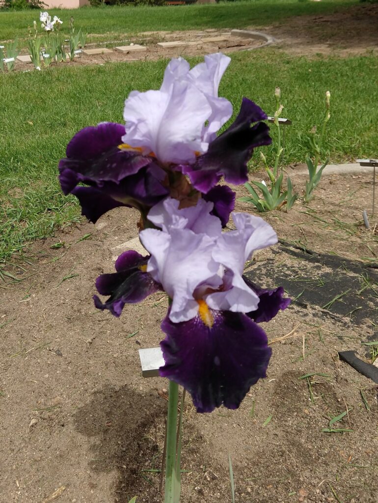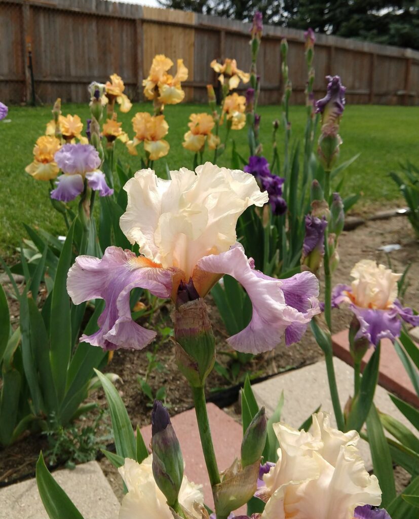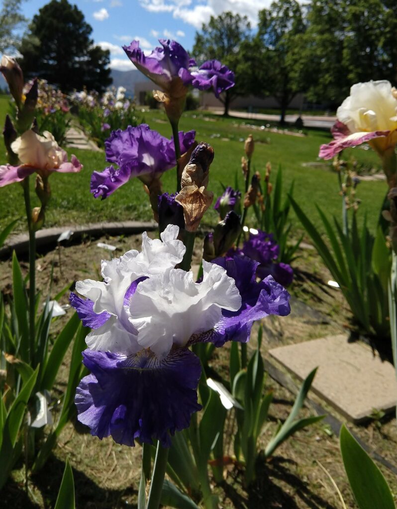This year’s weather has been a bit unpredictable, with a major storm in October, none in May, and a bit of snow in June. So the local iris garden (high altitude proving grounds) at the library was off to a slow start with blooming. However, every time I went over there I did add a few more picture of these gorgeous blooms to my collection, and here they are!