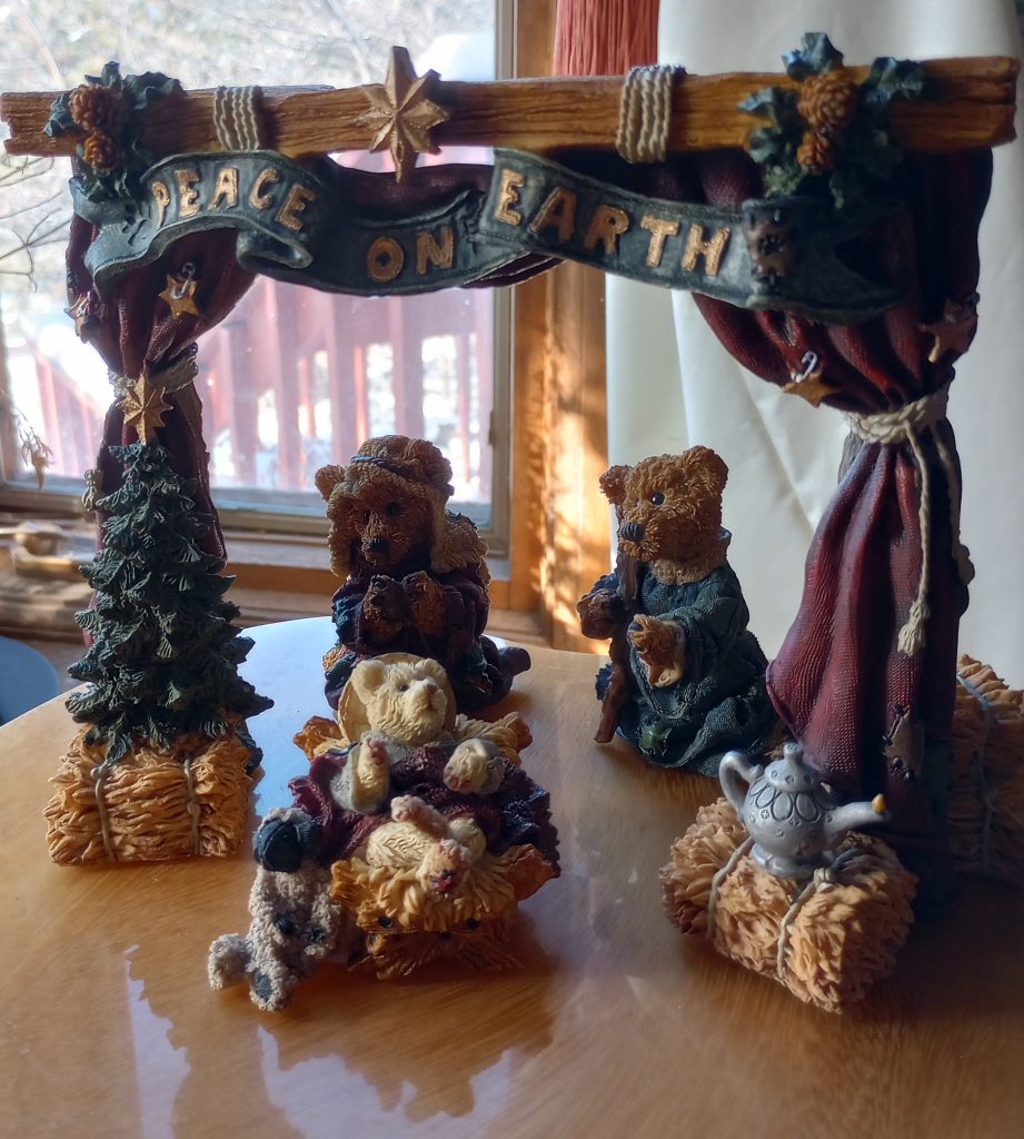 I didn’t have a proper nativity set (and I still don’t), but I thought that this one was rather nice. As I looked at it more closely, I noticed that it includes a teapot, a detail missing in most sets. And the baby has a tiny mouse stuck to the bottom of it’s foot, so it’s possibly not a newborn. Peace on Earth is always a good idea.