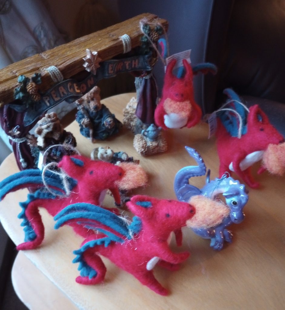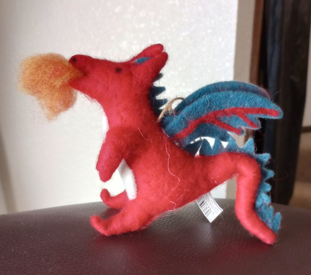 I saw this fire-breathing felt Welsh dragon in the shops last month and I thought it was adorable. So this joins the felt dinosaurs of last year.