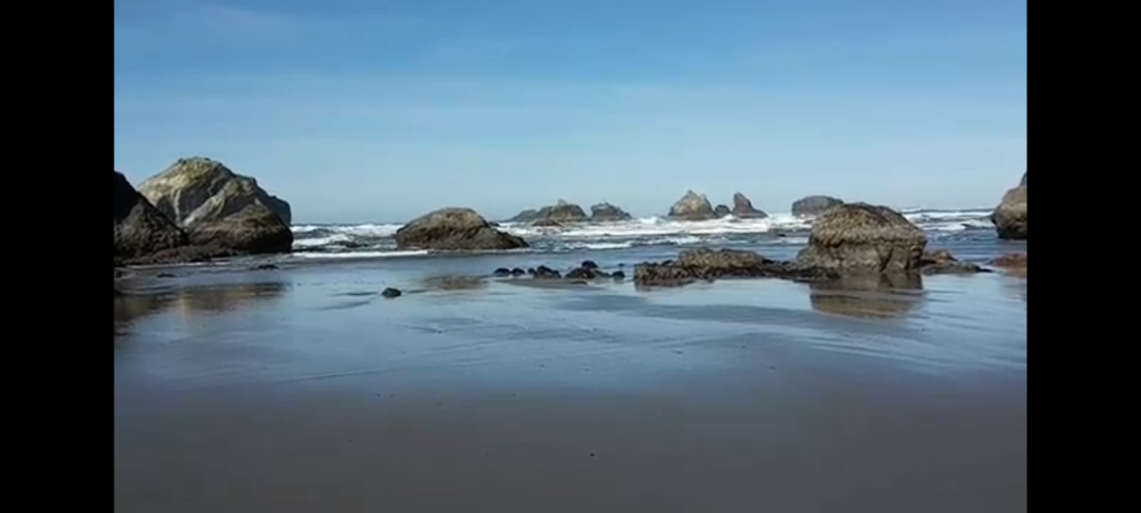 For some unknown reason (user error) I took this picture as a video (I blame my fat fingers). It was low tide, so we could walk along the beach just watching the waves crashing onto the rocks. The rocks were formerly on the bottom of the ocean, but have been scraped up by plate tectonics and are rather unique.